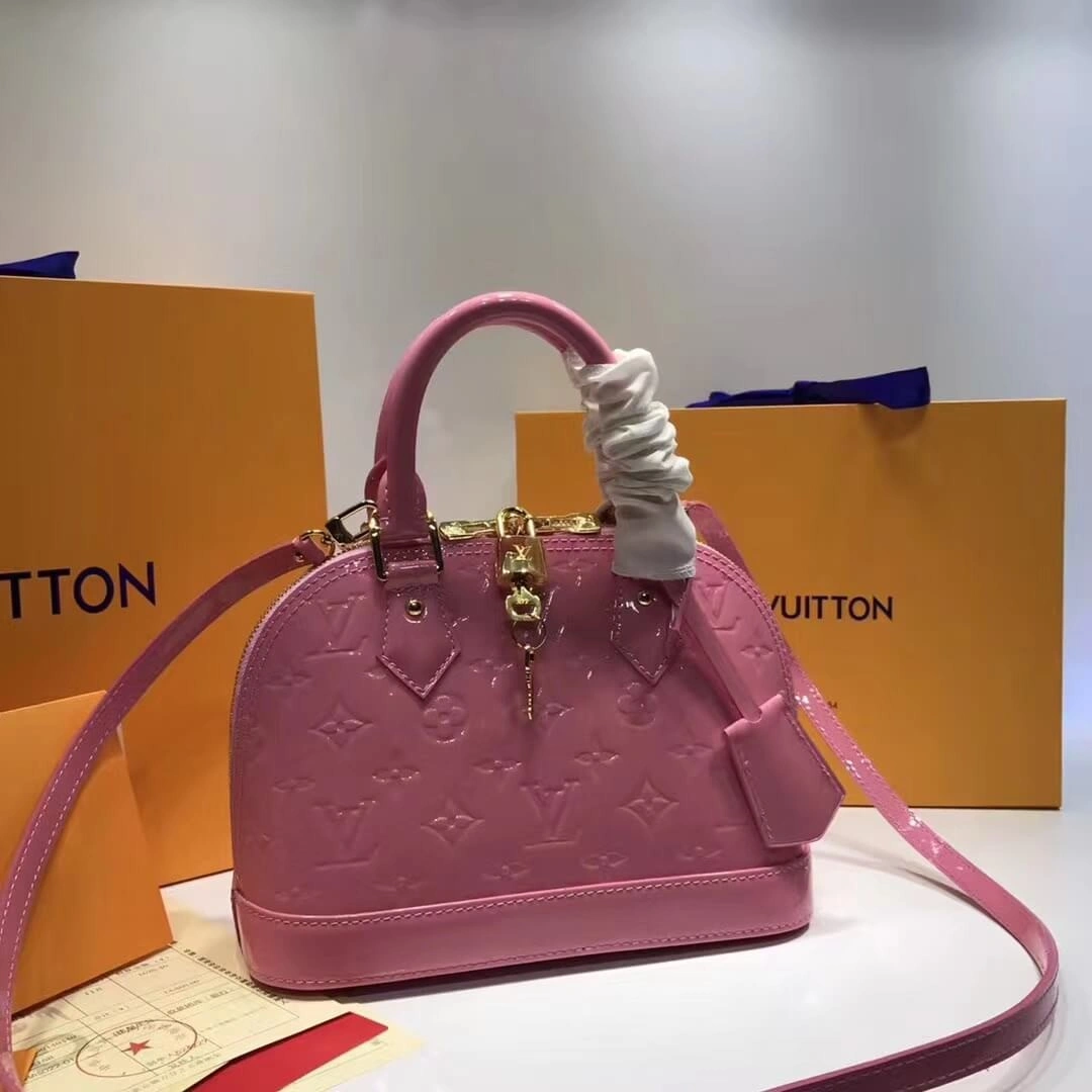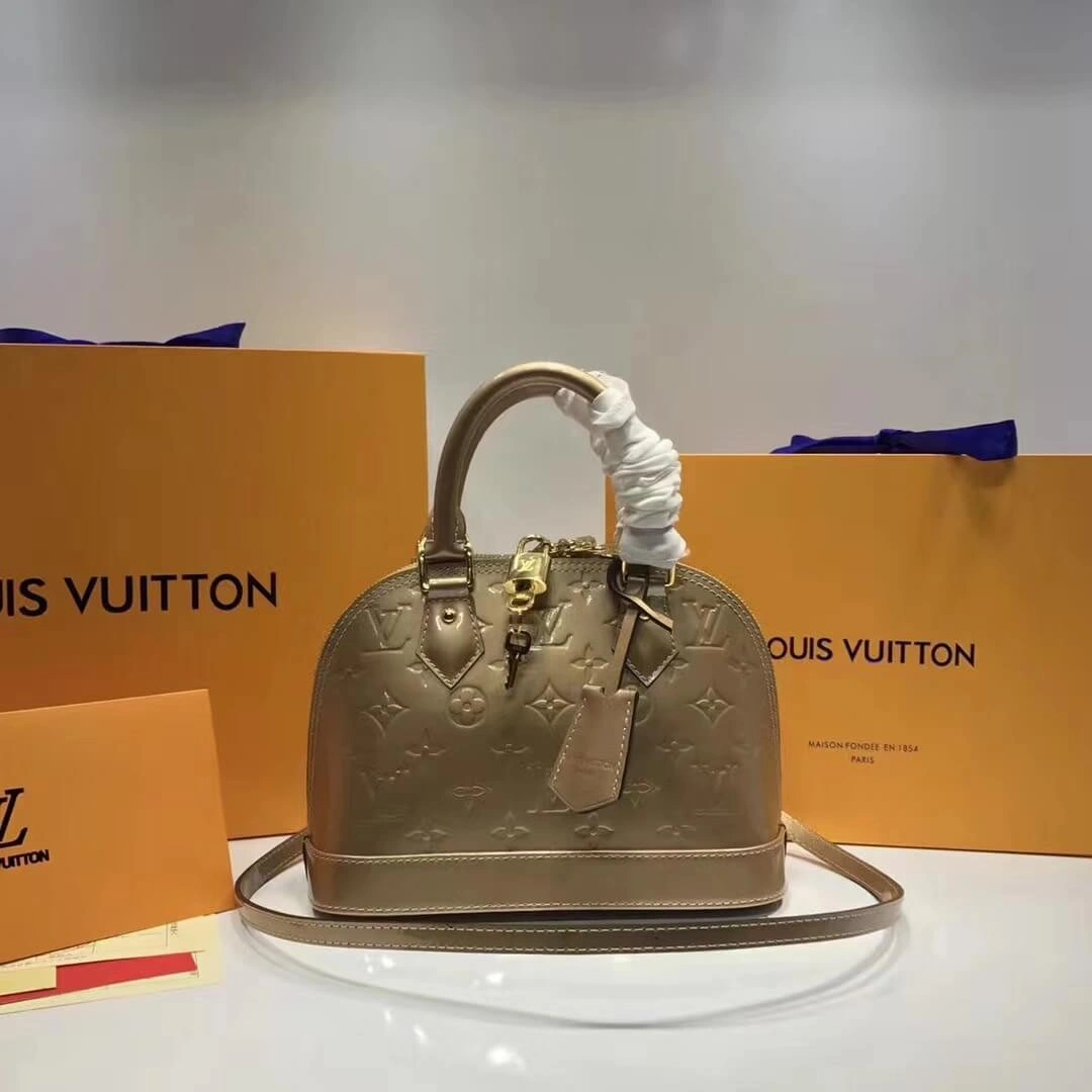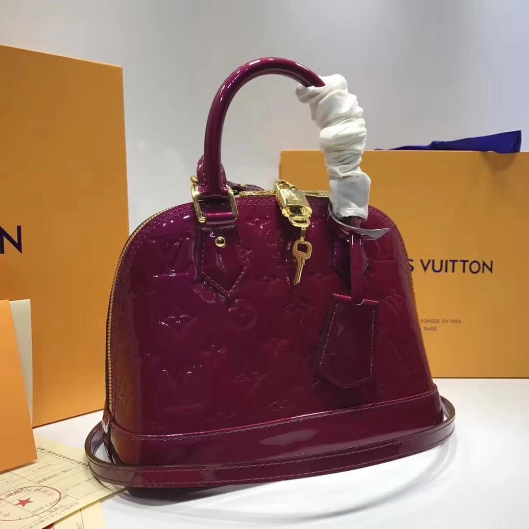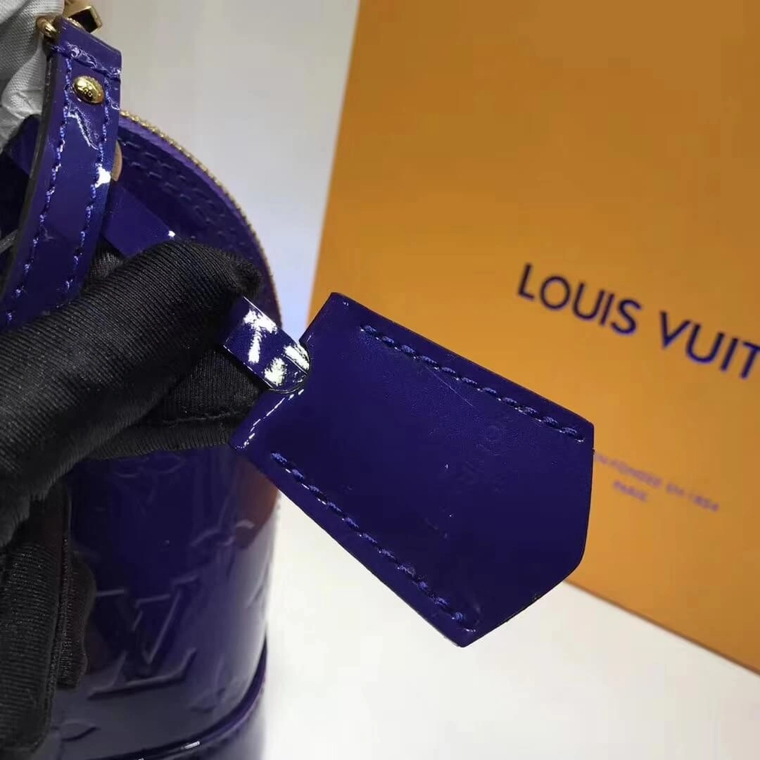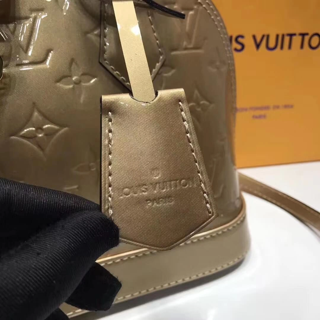 Alma BB Top Handle Satchel in Monogram Vernis Leather M50415