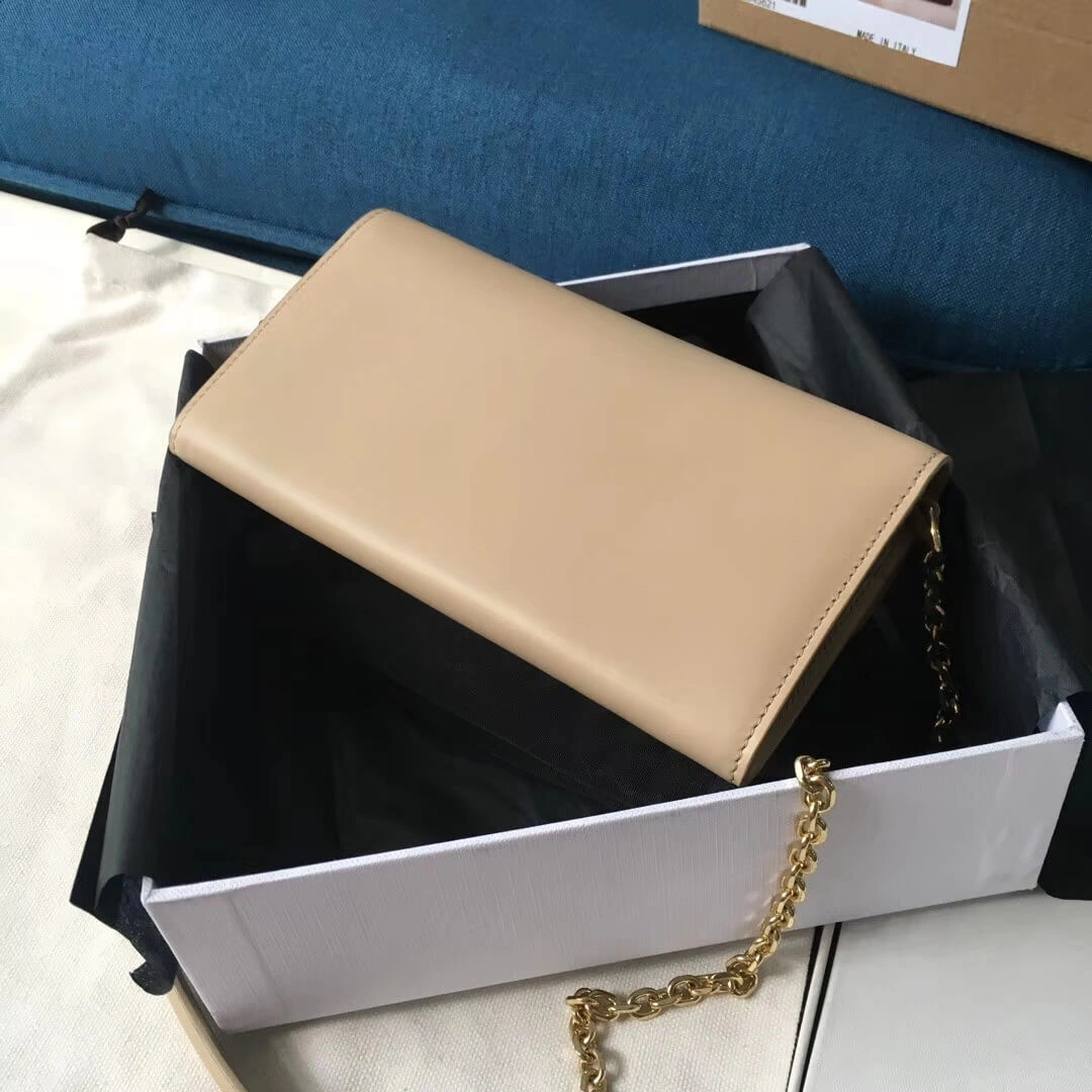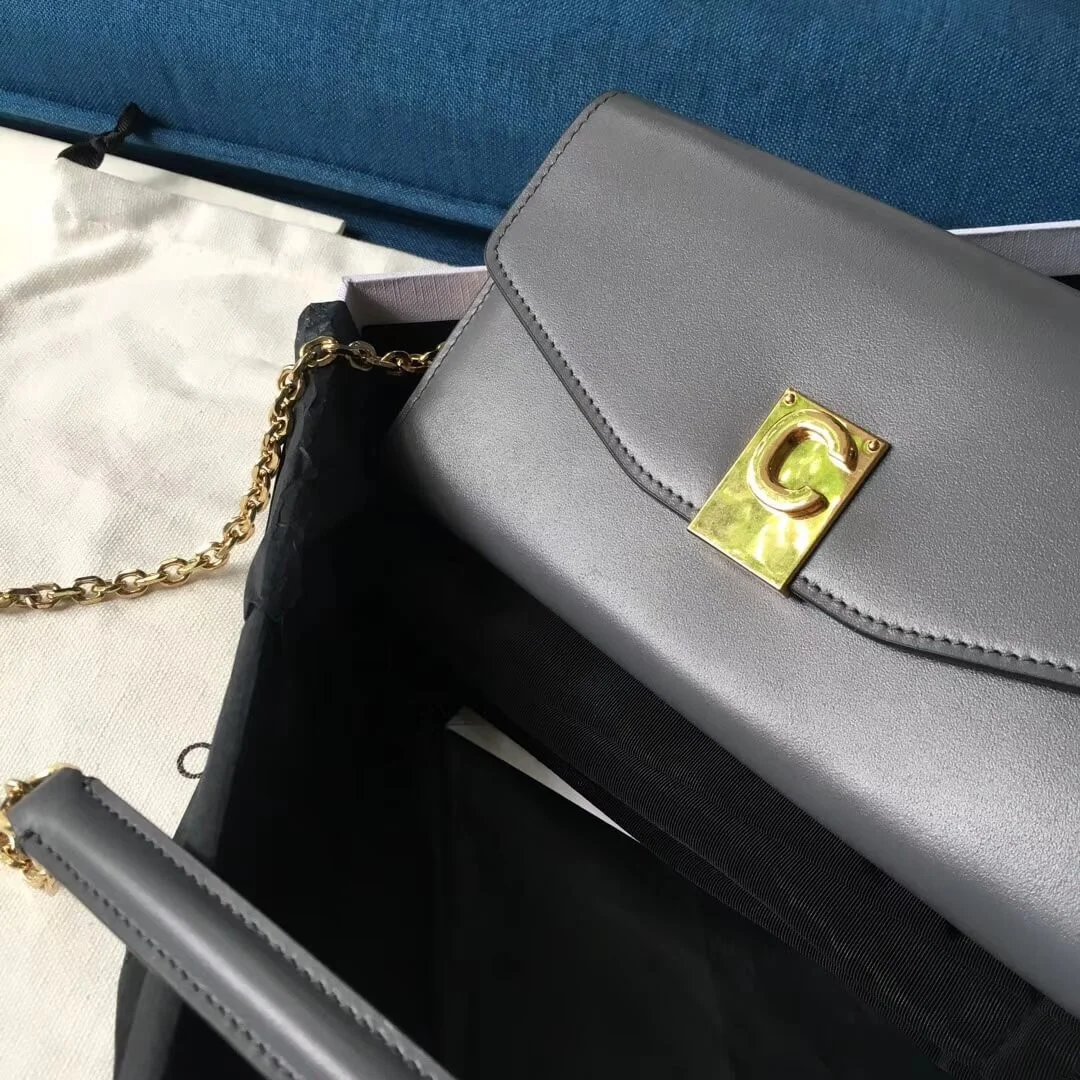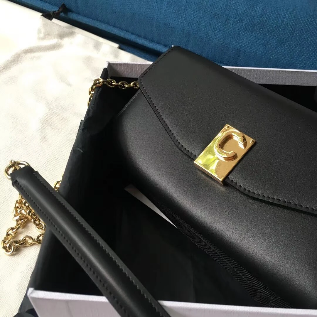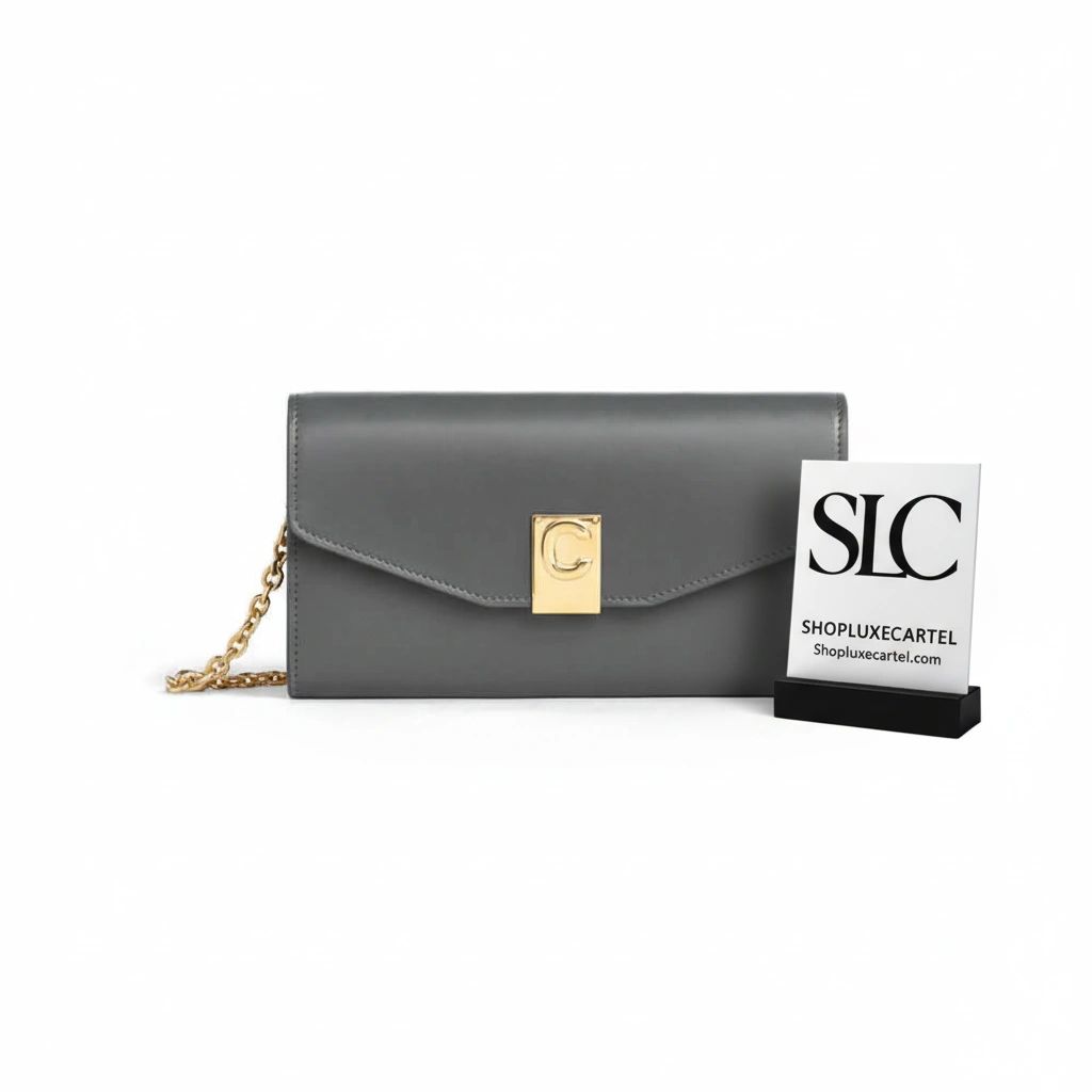 Experience timeless elegance and modern versatility with this wallet on a chain. Crafted from exquisitely smooth calfskin, this piece transitions effortlessly from a day-to-night wallet to a sophisticated shoulder or cross-body bag. Its clean lines are accentuated by polished, gold-tone hardware and a distinctive C-shaped clasp that adds a touch of classic charm.