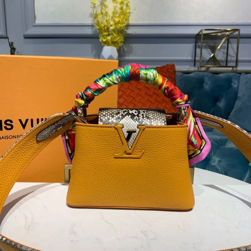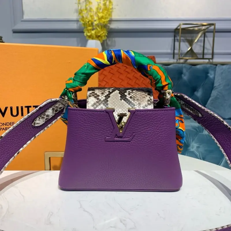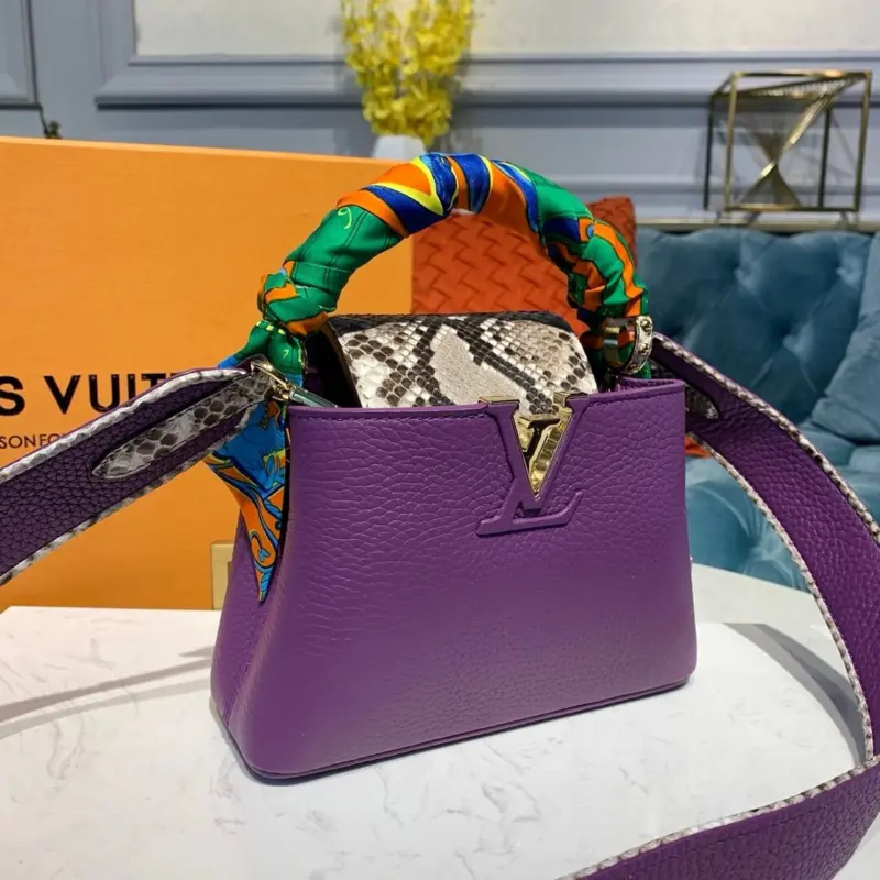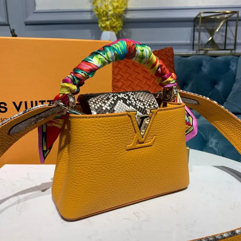 Capucines Mini Top Handle Bag in Taurillon Python Leather N97075