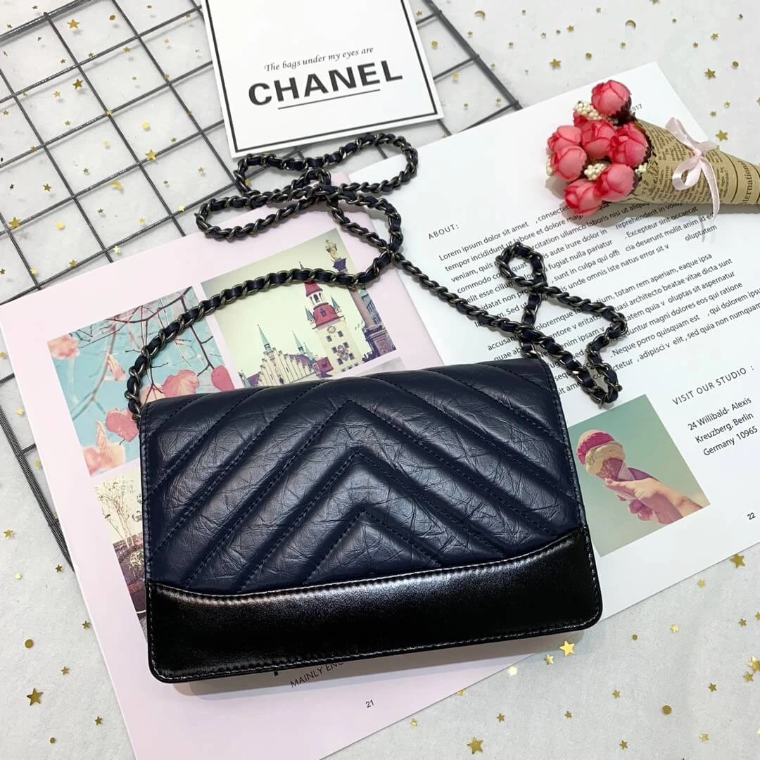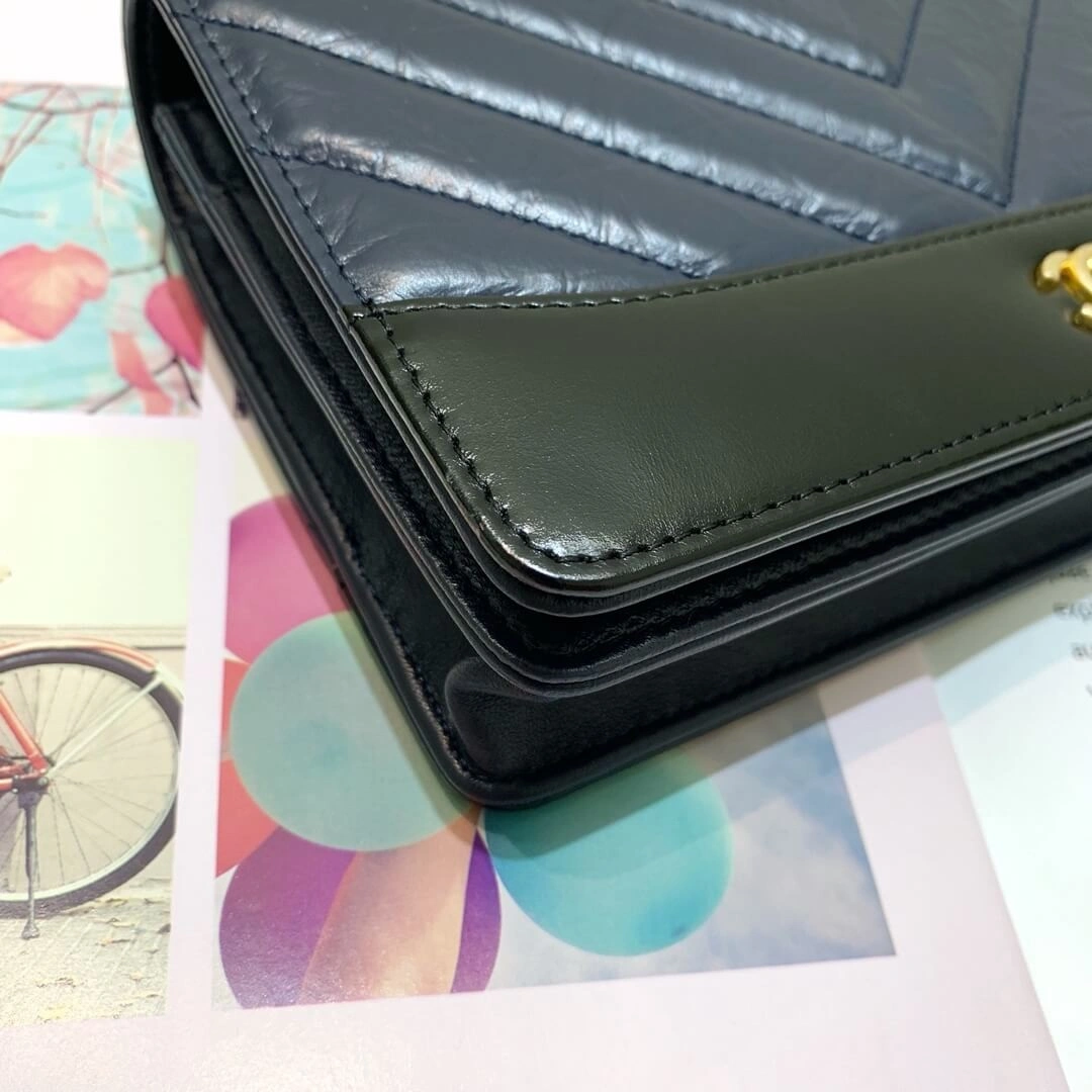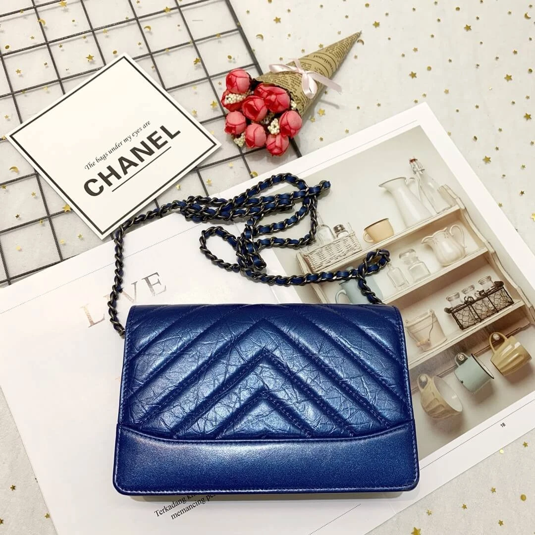 Chevron Quilted Crinkled Calfskin Wallet on Chain Bag A86025