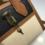 Designed for functionality, this bag features elegantly rolled top handles and a detachable strap that allows for multiple carrying options, from hand-held to shoulder or crossbody style. The gleaming gold-tone hardware, including a distinctive turn-lock and padlock, adds a final touch of polished refinement to this modern classic.