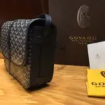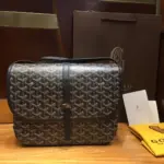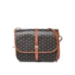Expertly crafted for daily use, this messenger bag combines timeless style with practical design. It is constructed from a durable coated canvas in a classic black, accented with rich brown leather trim for a touch of elegance. The bag’s versatile and adjustable shoulder strap allows it to be comfortably worn over the shoulder or as a crossbody, making it the perfect accessory for any occasion.