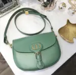 Designed for versatility, this bag features a removable and adjustable shoulder strap with a distinctive, military-inspired buckle. This key feature allows the bag to be worn comfortably over the shoulder, styled as a crossbody, or carried by hand for a more formal look. The front flap is secured with a magnetic clasp, neatly hidden behind a decorative initial-plaque buckle for a secure and stylish closure.