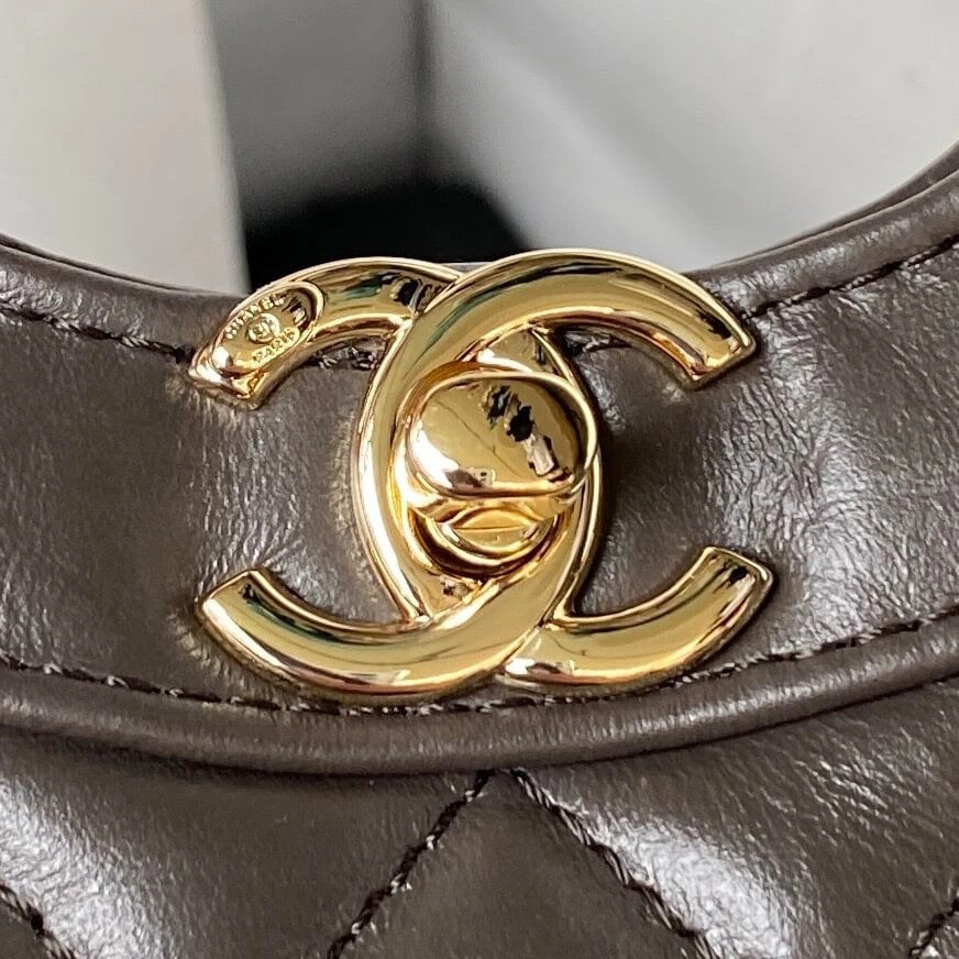 The bag’s luxurious appeal is further enhanced by its polished gold-tone metal hardware, which adds a warm, radiant finish. This compact and versatile accessory is a perfect statement of understated luxury, seamlessly complementing both day and evening ensembles.