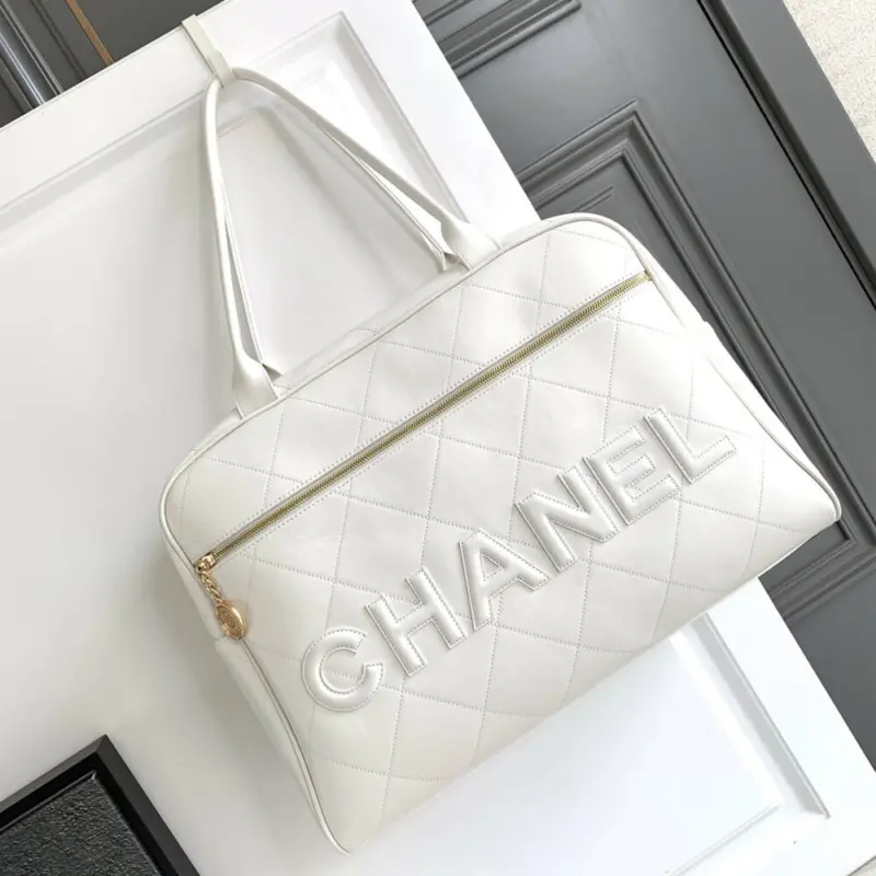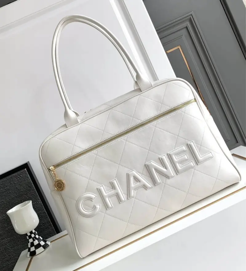 Classic Calfskin Quilted Maxi Top Handle Bowling Bag AS3718