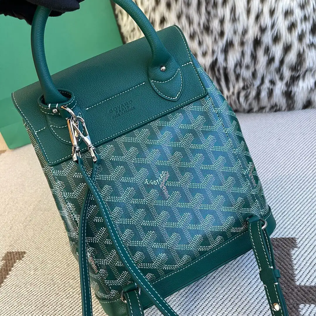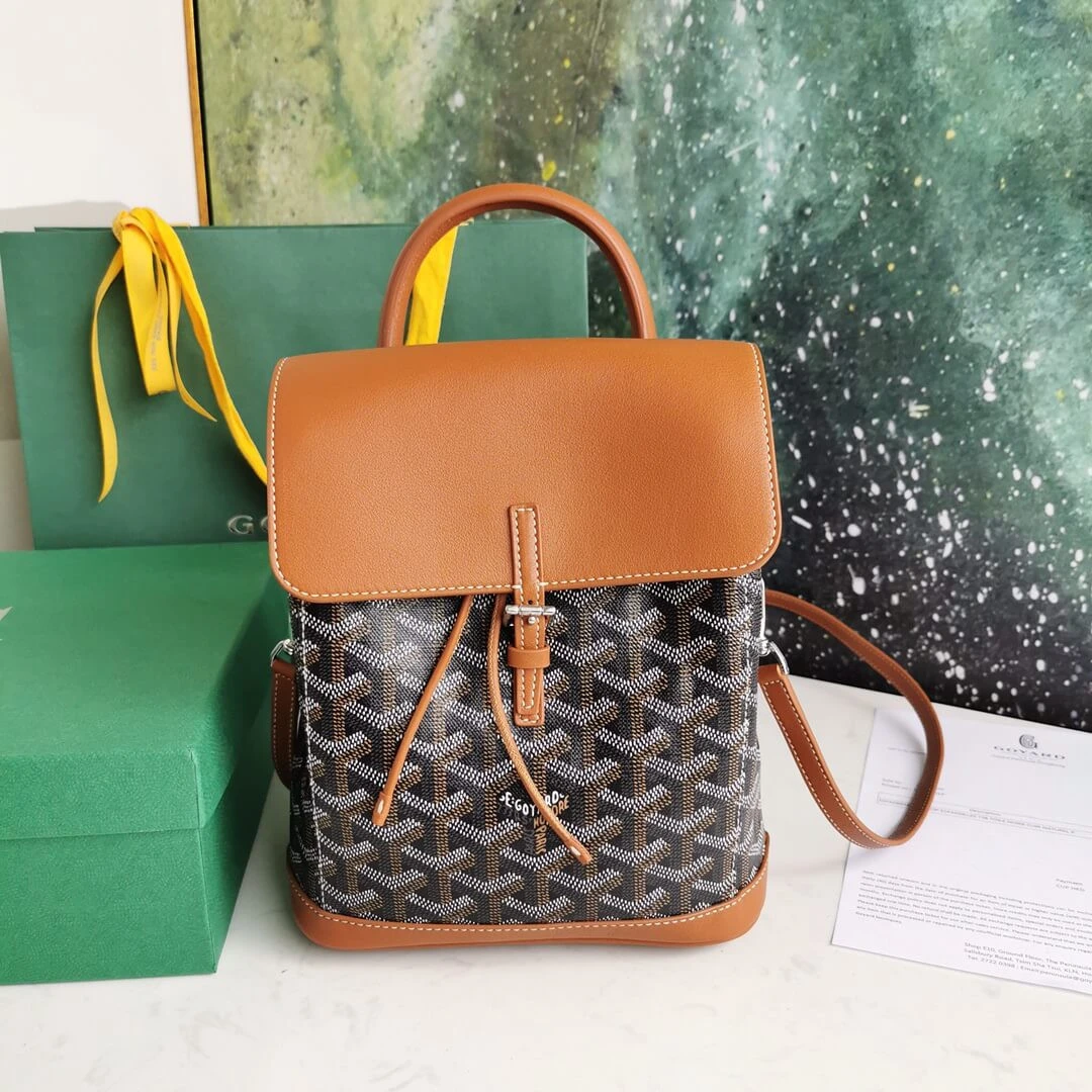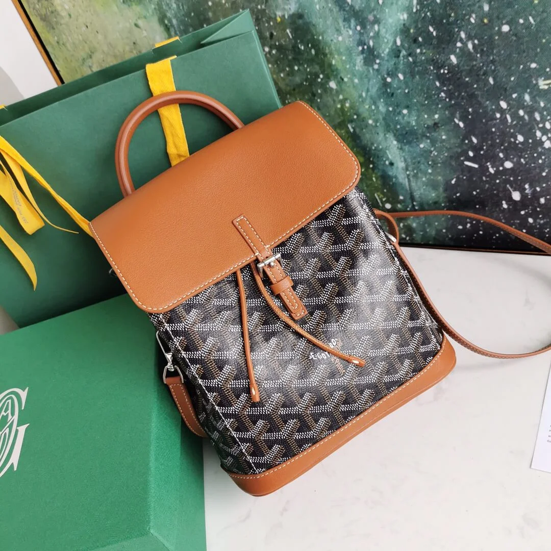 Experience true versatility with this beautifully designed convertible backpack. Its clever construction, featuring a system of hooks, loops, and D-rings, allows it to effortlessly transition from a chic mini backpack to a stylish crossbody bag. The exterior is adorned with a timeless chevron print on a durable coated canvas, making it a sophisticated choice for travel, errands, or daily commuting.