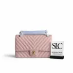 This bag’s thoughtful interior is designed for optimal organization, featuring a distinctive double flap that opens to reveal multiple compartments. The polished, woven chain strap can be worn long for crossbody convenience or doubled up for a chic shoulder look, offering multiple styling options. An exterior back pocket provides quick access to essentials, blending functionality with high-fashion appeal.