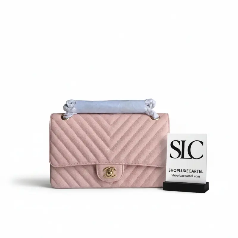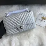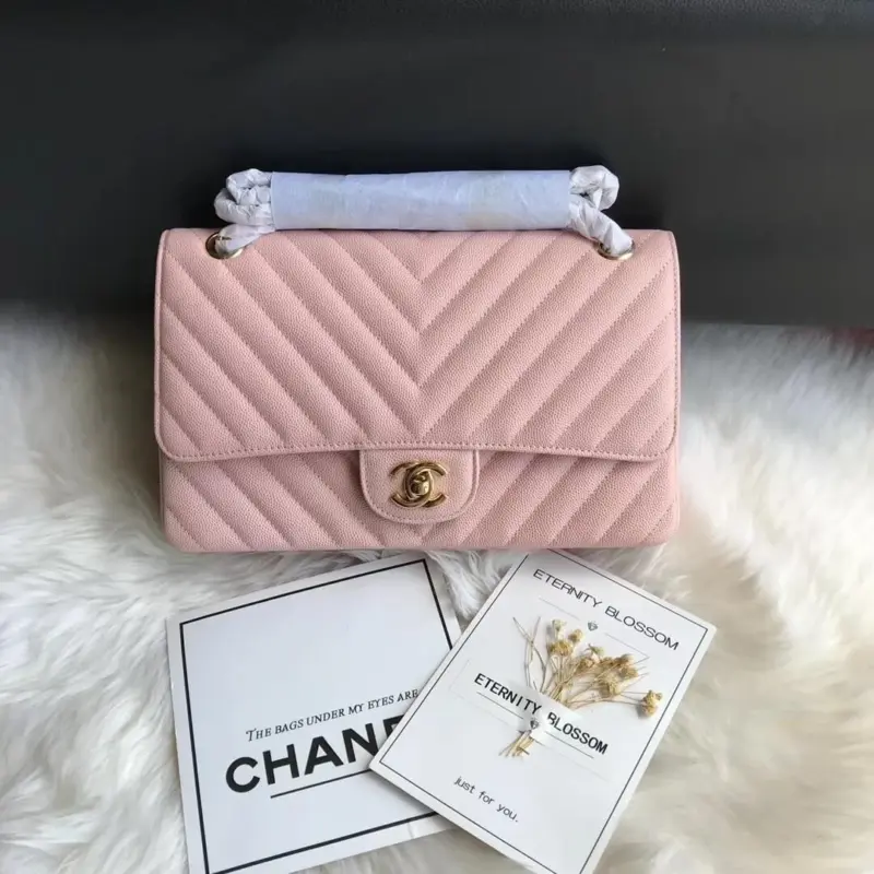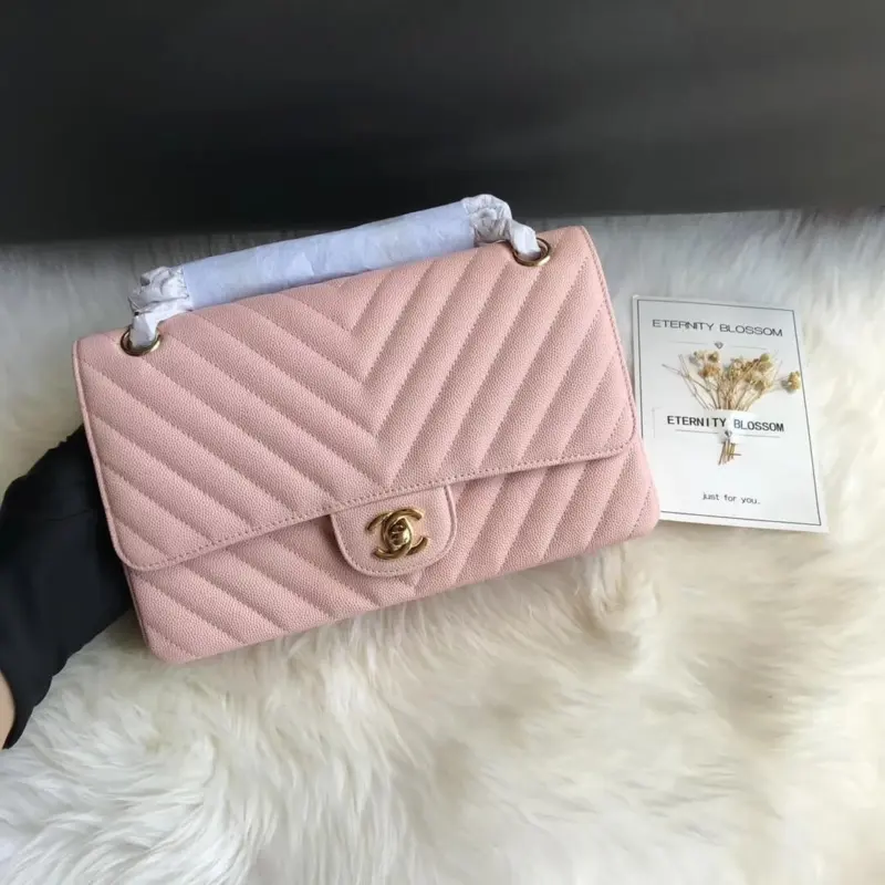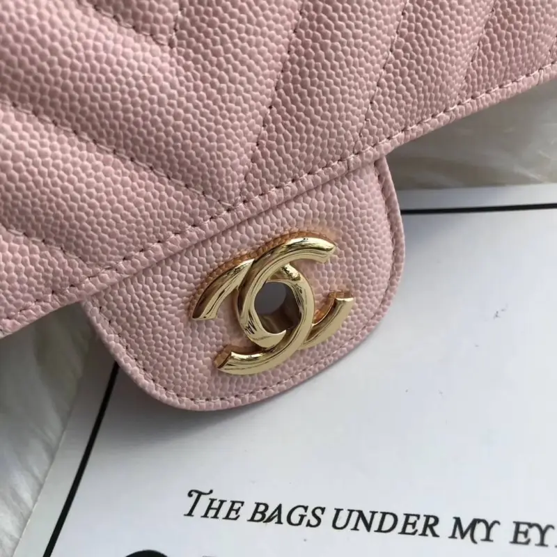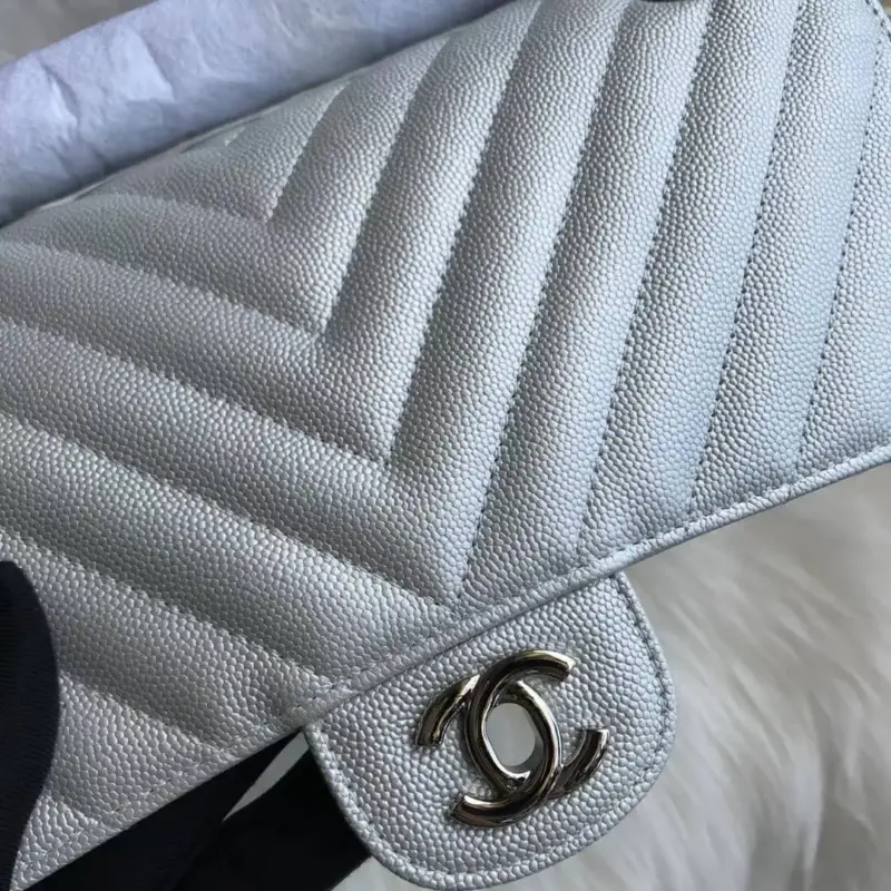 Classic Chevron Quilted Caviar Leather Flap Shoulder Bag A01112