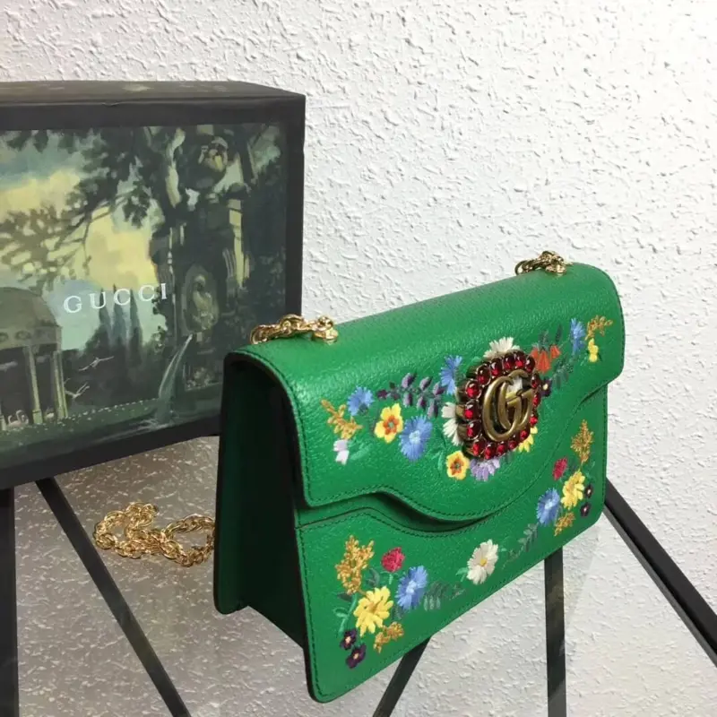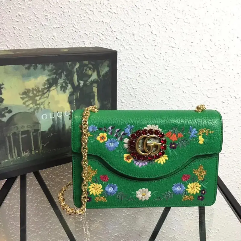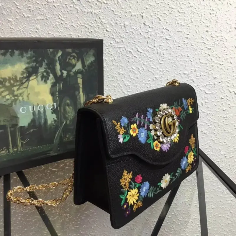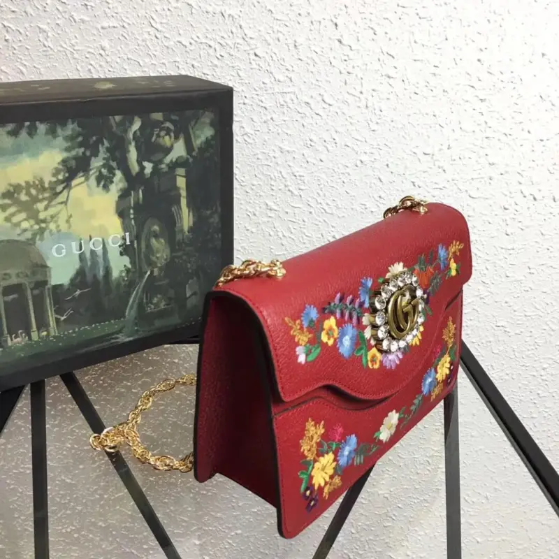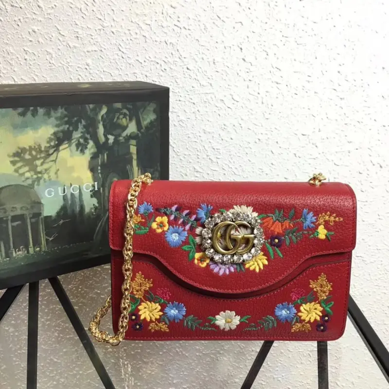 Classic Floral Embroidered Small Leather Shoulder Bag 499617