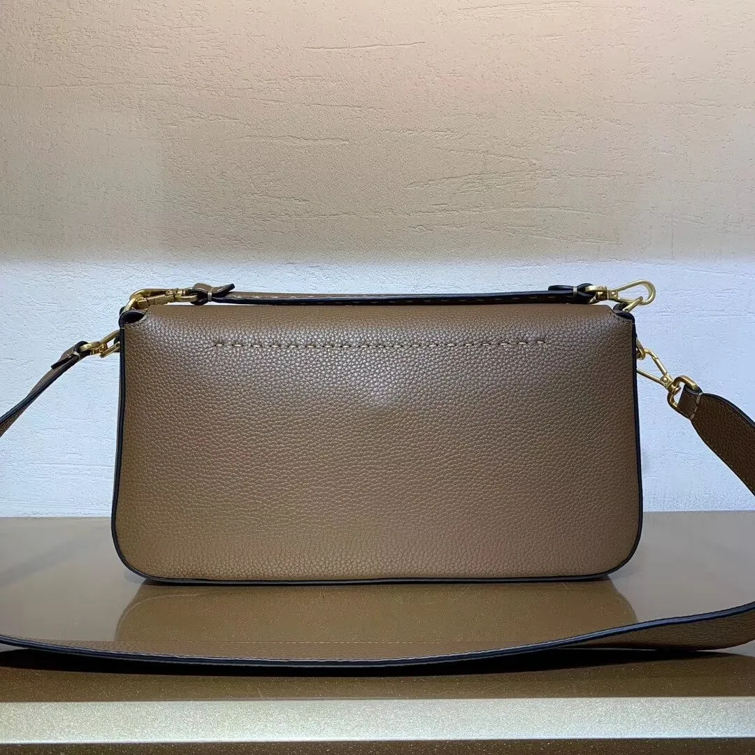 This beautifully designed large baguette bag showcases a timeless, elongated silhouette crafted from premium grained calfskin leather. Its versatile construction allows it to be carried by hand or worn comfortably on the shoulder or as a cross-body, thanks to a convenient detachable strap. The elegant design is perfect for adding a touch of sophistication to any outfit.