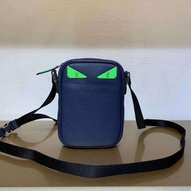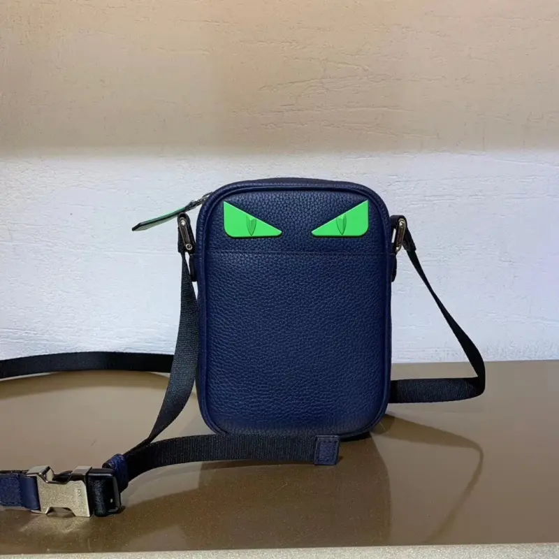 Discover the perfect blend of playful design and everyday functionality with this compact crossbody messenger bag. Crafted from rich, grained blue leather, this bag is designed for the modern individual on the go. Its sleek profile is complemented by a convenient front pocket and a secure zip-top closure, ensuring your essentials are always within reach.