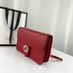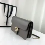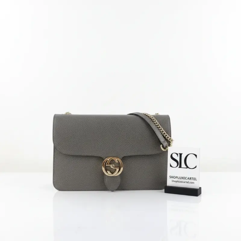 - Hardware: Polished gold-tone hardware with an interlocking emblem snap