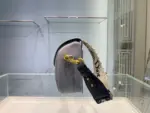 Designed for versatility, this bag features a removable, intricately embroidered shoulder strap. This adjustable strap allows the bag to be carried comfortably on the shoulder, worn as a crossbody, or removed entirely to be carried by hand. An embossed signature-style accent on the back adds a final touch of understated detail.