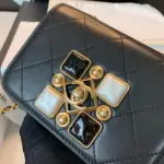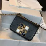 This shoulder bag is designed for both beauty and practicality. The front flap is adorned with a sparkling, crystal-embellished emblem that captures the light beautifully, adding a touch of glamour to your ensemble. It offers just enough space to carry your essentials, ensuring you have everything you need in one stylish package.
