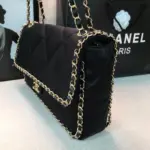 Discover timeless elegance with this beautifully crafted evening shoulder bag. Its luxurious satin exterior and classic quilted design offer a sophisticated aesthetic perfect for any formal occasion or special event. The polished gold-tone metal hardware adds a touch of brilliance, complementing the bag’s refined silhouette and secure flap closure.