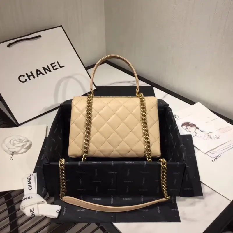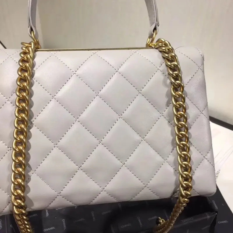 Experience timeless elegance with this beautifully structured shoulder bag. Featuring a sophisticated top handle and a classic quilted finish, this piece blends traditional style with contemporary flair. The versatile design is complemented by a bold, vintage-inspired chain strap, allowing it to be worn as a shoulder bag or carried gracefully by its handle for multiple styling options.