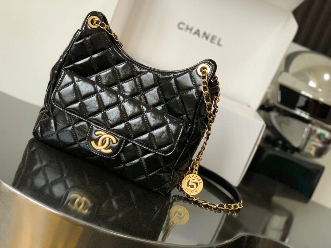 Classic Shoulder Hobo Bag in Shiny Crumpled Calfskin AS3690