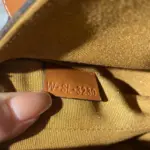 - Exterior: Durable coated canvas with a geometric print and calfskin leather trimmings