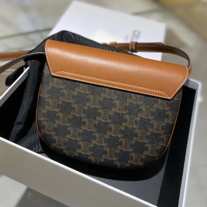Embrace timeless elegance with this beautifully crafted shoulder saddle bag. Its classic, curved silhouette is rendered in a durable coated canvas, adorned with a sophisticated, interlocking arch-inspired pattern that exudes heritage charm. Luxurious calfskin trimmings provide a refined contrast, elevating the bag’s overall design.