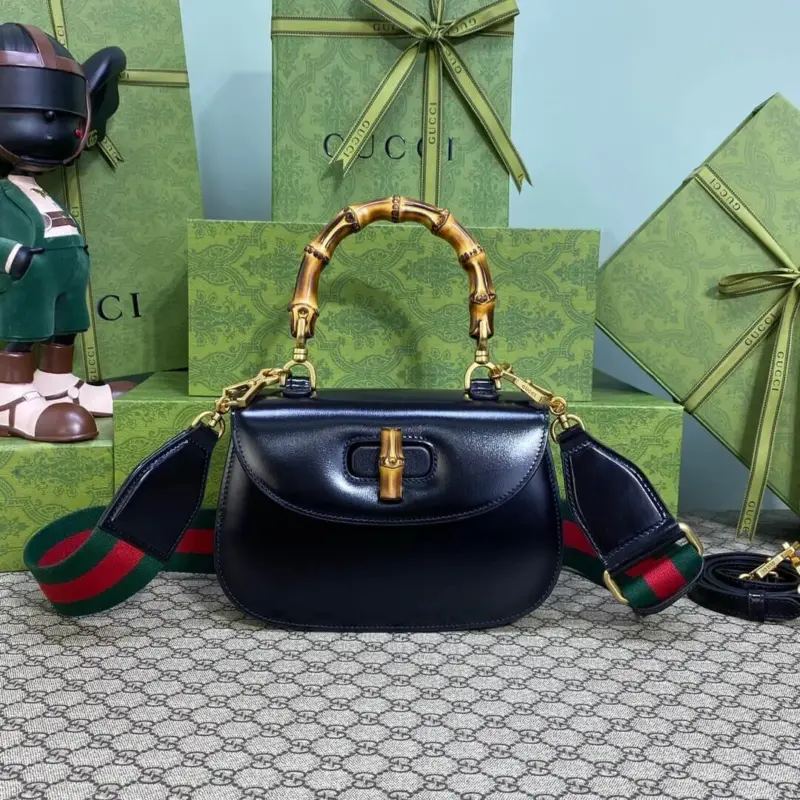 Classic Small Top Handle Bag with Bamboo Handle 675797