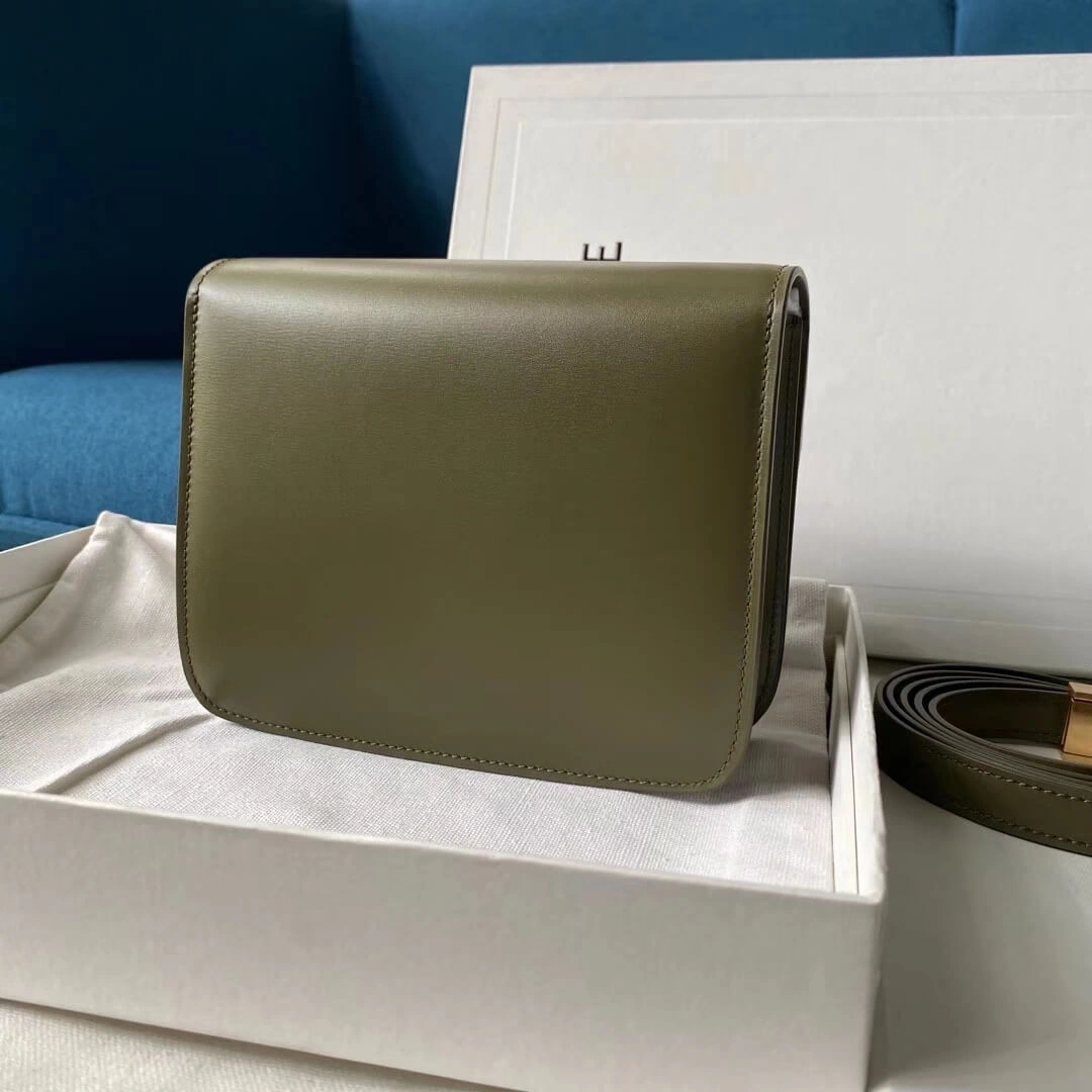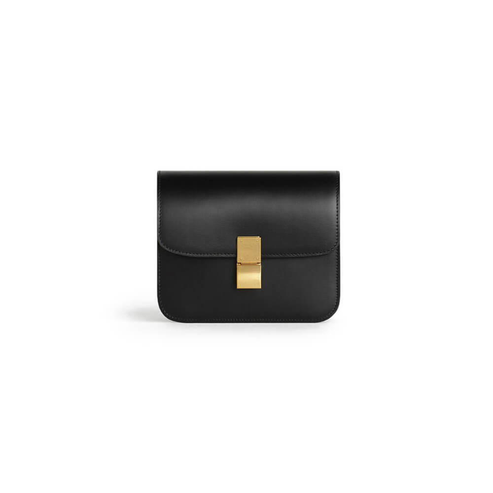 Discover a timeless accessory with this exquisitely crafted box style shoulder bag. Made from 100% smooth calfskin, this piece boasts a structured, elegant silhouette that offers a touch of refined sophistication to any outfit. The luxurious lambskin-lined interior and polished gold-tone hardware complete its classic, high-end appeal.