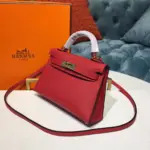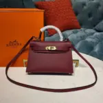 This compact bag offers remarkable versatility for any occasion. Carry it by its elegant single rolled handle for a polished look, or attach the optional shoulder strap for convenient, hands-free wear. The interior is thoughtfully lined with soft chevre leather and includes a small pocket to keep your essentials organized, secured by a classic front toggle closure.