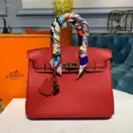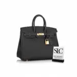 An icon of sophisticated design, this top-handle satchel is a testament to timeless style and impeccable craftsmanship. Meticulously constructed from a finely grained and resilient calfskin leather, this bag is both durable and exceptionally soft to the touch. Its classic silhouette is complemented by gleaming gold-tone hardware, offering a luxurious finish that is perfect for any occasion.