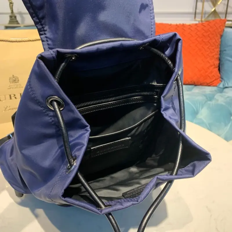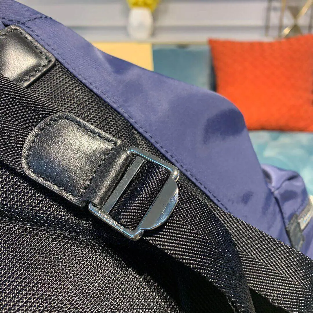 Inspired by timeless military designs, this versatile rucksack is crafted for both durability and style. The backpack is constructed from resilient nylon and refined with elegant, topstitched leather trims, offering a sophisticated look that’s perfect for daily commutes or weekend travel. A distinctive logo print on the front adds a touch of modern character to its classic silhouette.