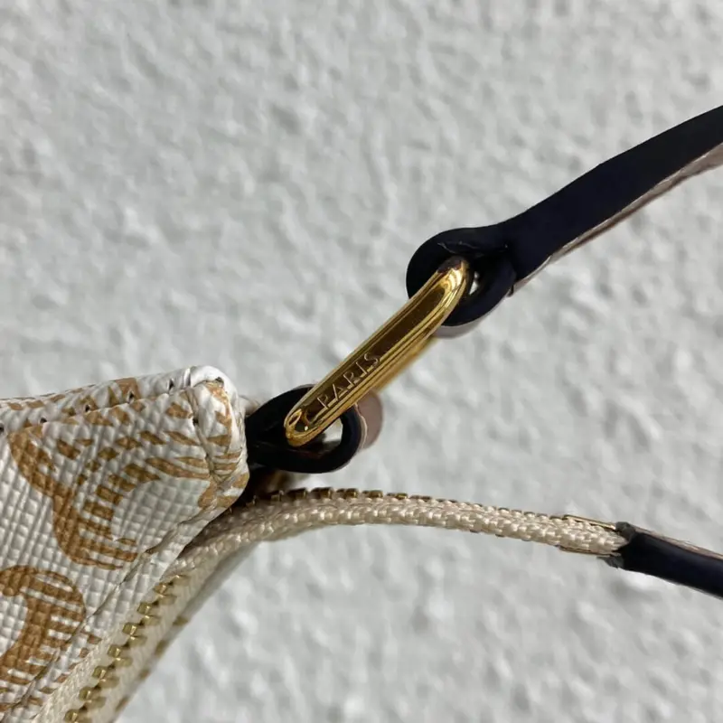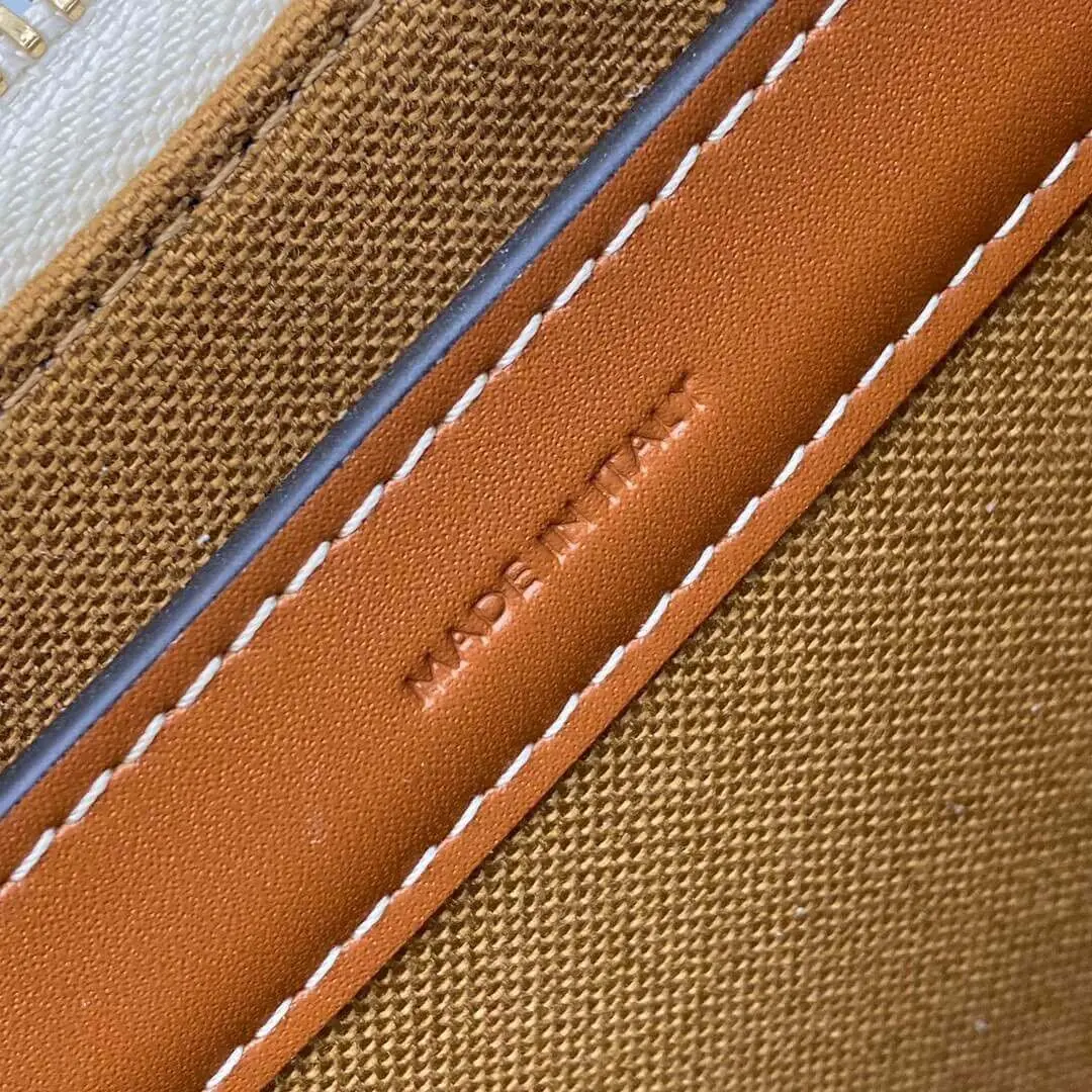 • Material: Coated canvas featuring a distinctive geometric arch print with calfskin trimmings.