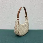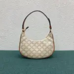 Embrace timeless elegance with this beautifully crafted half-moon shoulder bag. Its iconic crescent shape and sophisticated patterned canvas create a look that is both classic and contemporary. Trimmed with smooth calfskin leather and finished with polished gold-tone hardware, this bag offers a touch of luxury for any occasion. The versatile design is perfect for transitioning from daytime errands to an evening out.