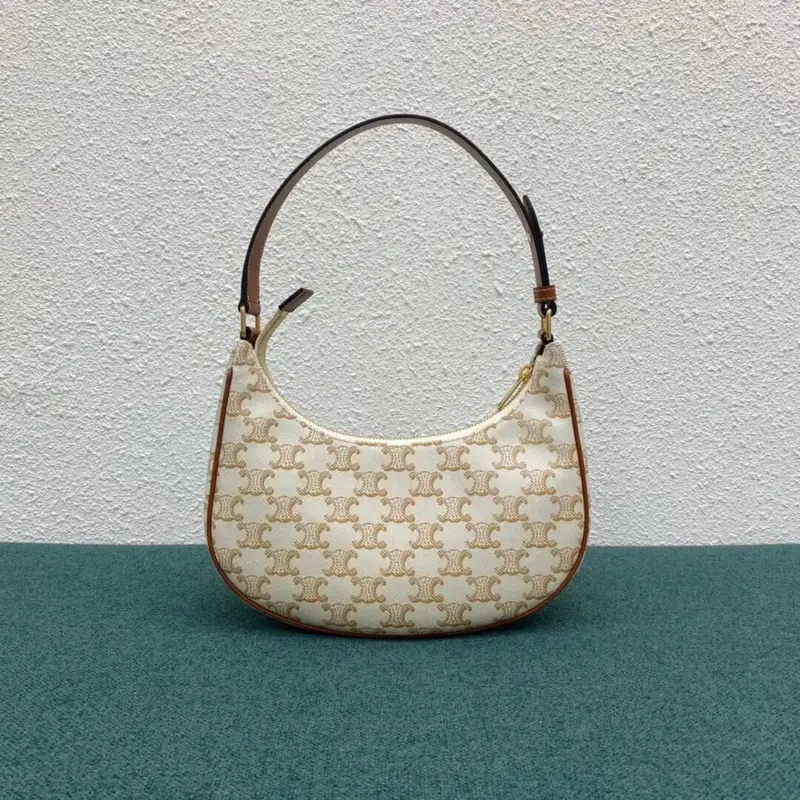 Classic Triomphe Canvas Ava Half-Moon Shoulder Bag White 193952
