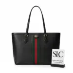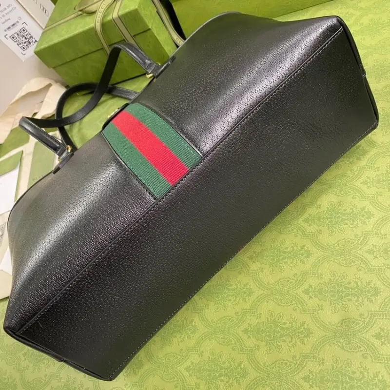 Classic Web Stripe Top Handle Leather Tote Bag 631685