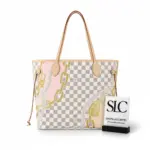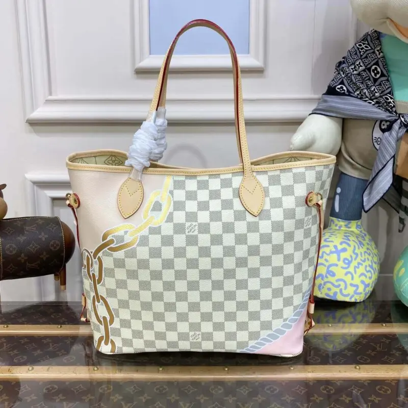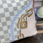 Coastal Checkered MM Tote Bag with Nautical Print N40471