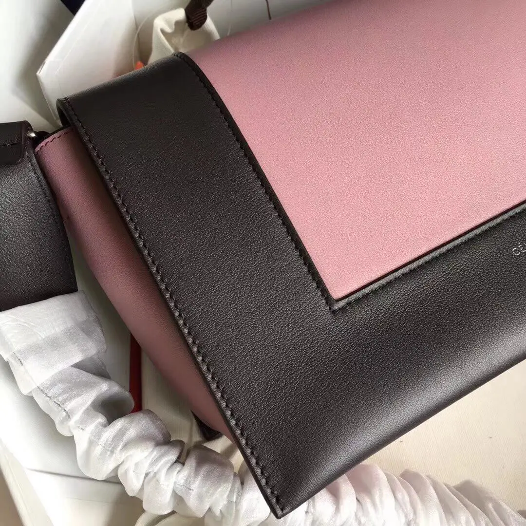 Colorblock Frame Medium Leather Shoulder Bag Black Pink 180263