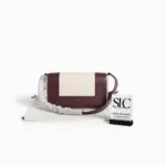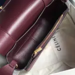 This medium shoulder bag showcases a striking colorblock design in rich burgundy and crisp white, offering a modern and sophisticated aesthetic. Its structured, frame-like silhouette is crafted from luxurious lambskin, providing a smooth and refined finish that complements any outfit.