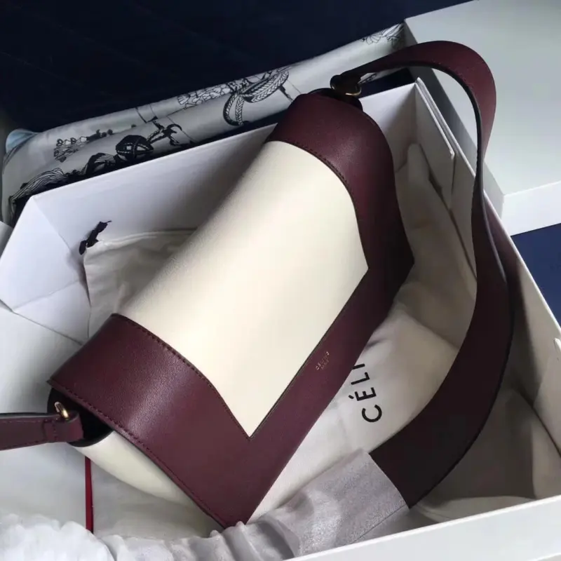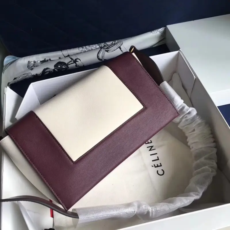 Colorblock Frame Medium Leather Shoulder Bag Burgundy White 180263