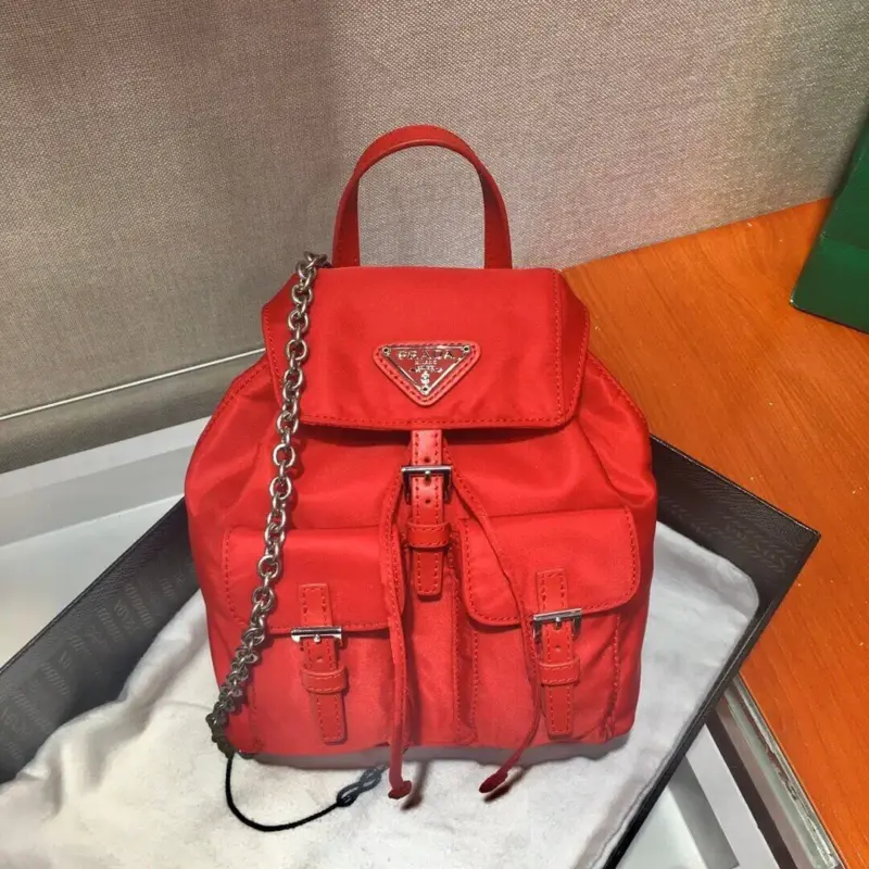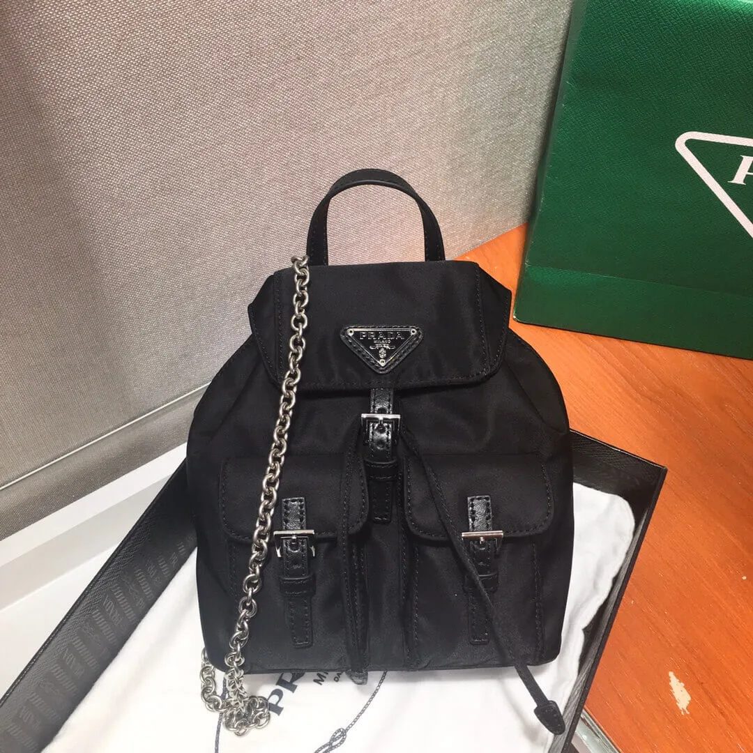 This versatile mini backpack offers a perfect blend of functional design and sophisticated style. Crafted from durable nylon with refined leather accents, this accessory is both lightweight and resilient. Its clever design includes a detachable polished metal chain, allowing it to be worn comfortably as a shoulder bag or crossbody, or carried as a chic backpack for hands-free convenience.
