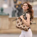 A versatile feature of this tote is its adjustable silhouette; leather side laces can be cinched for a more structured, refined look, or loosened for a relaxed, casual feel. It’s the perfect accessory to elevate any outfit with a touch of graphic sophistication.