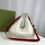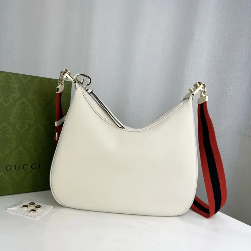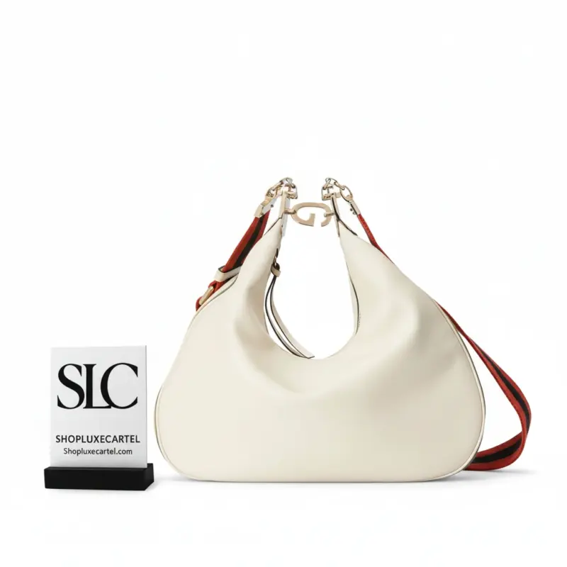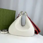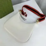 Inspired by timeless glamour, this medium shoulder bag offers a refined design with vintage appeal. Its distinctive crescent moon shape is crafted from supple white leather, creating a sophisticated silhouette that stands out. The soft material is beautifully complemented by polished gold-toned hardware for a classic and elegant look.
