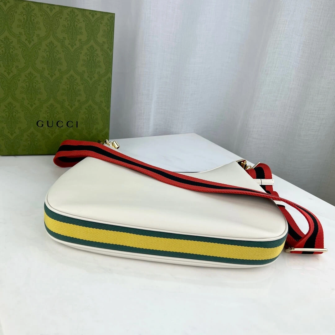 Crescent Shape White Leather Attache Medium Shoulder Bag 702823