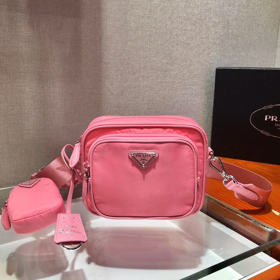Crossbody Camera Bag in Nylon and Textured Leather 1BH017
