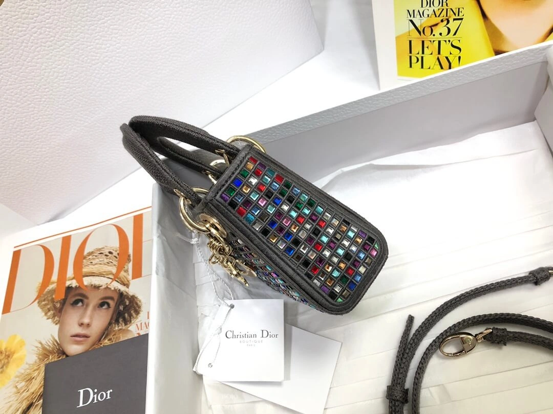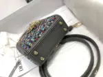 Crystal Embroidered Micro Top Handle Bag Dark Grey Canvas S0856