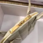 This handbag is distinguished by its seamless construction and meticulous attention to detail. The distinctive shape is designed to be appreciated from every angle, offering a blend of artistic expression and practical functionality. A secure top zipper opens to a well-organized interior, making this piece a perfect companion for the discerning individual.