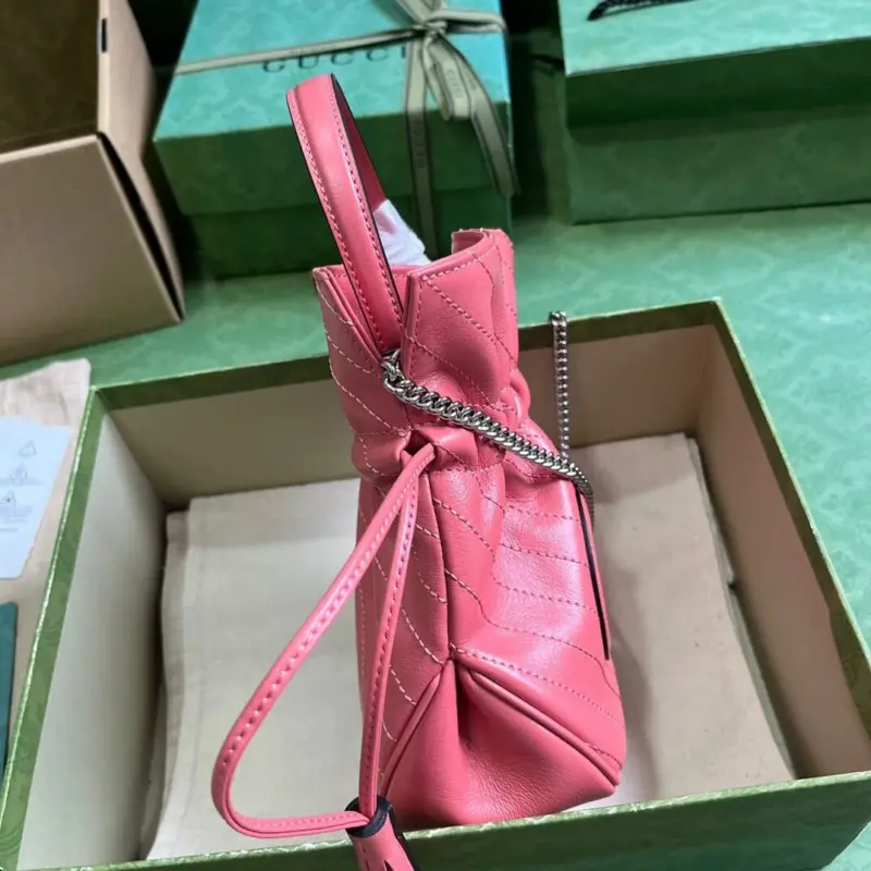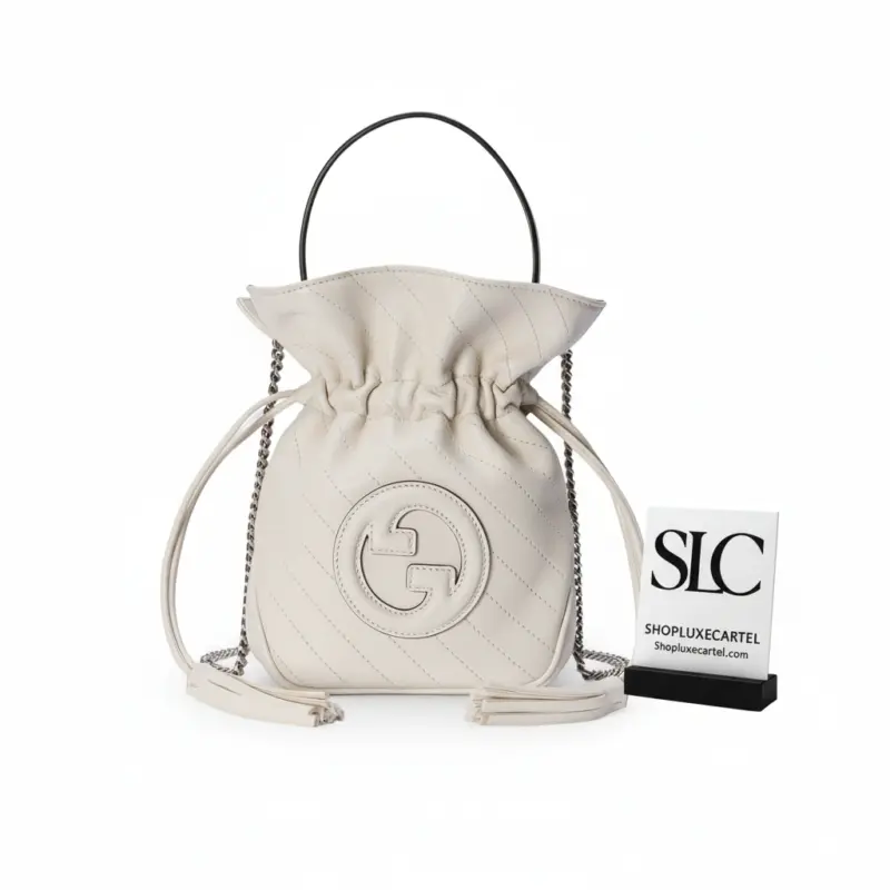 Designed for versatility, this compact bag features both a classic top handle for a handheld option and a detachable chain shoulder strap for comfortable crossbody or shoulder wear. The secure drawstring closure opens to a smooth taffeta-lined interior, providing a chic and practical space for your essentials.