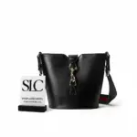 The design is enhanced by a distinctive, multi-colored striped shoulder strap and is finished with polished, light gold-toned hardware. The secure hook closure opens to a durable cotton and linen-lined interior, which includes a convenient zip pocket featuring a decorative crest puller to keep your essentials organized and accessible.