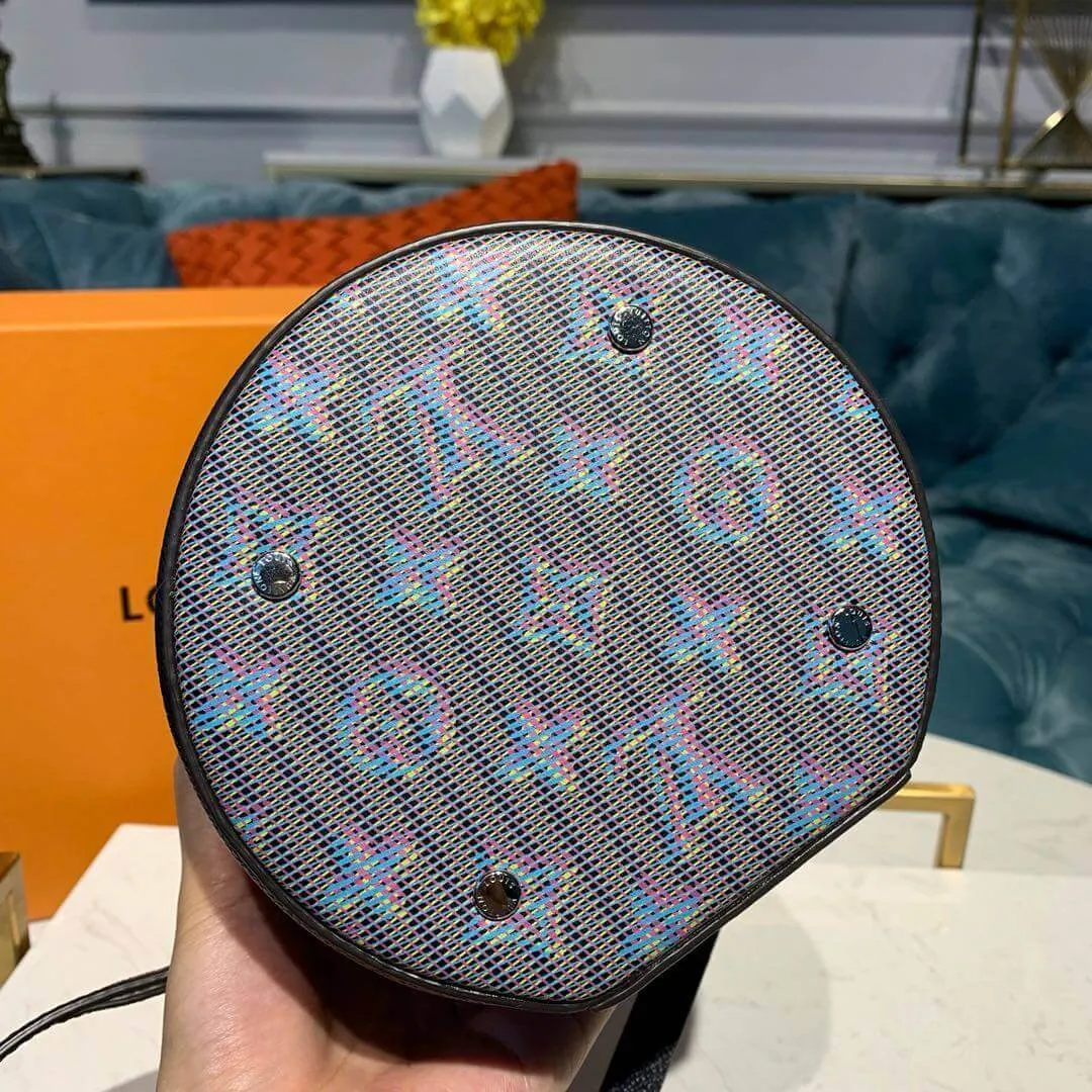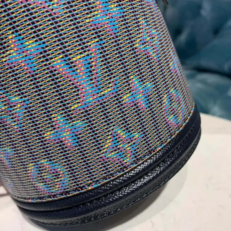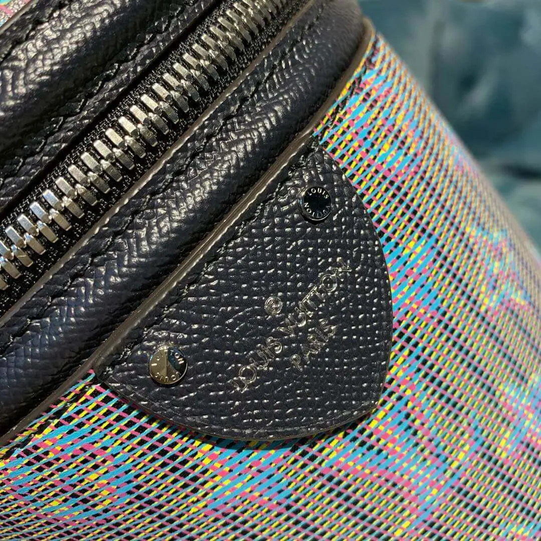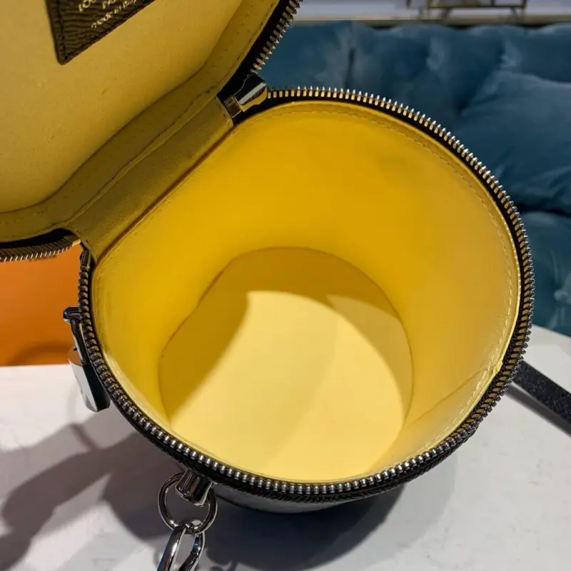 Showcasing a distinctive cylindrical silhouette, this stunning handbag is inspired by the elegant vanity cases of a bygone era. The bag is crafted from printed calf leather and features a vibrant, pop-art-inspired monogram pattern, creating a bold and contemporary look that stands out.