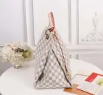 The spacious, open-top design reveals a soft microfiber lining and a thoughtfully organized interior. With multiple pockets, it’s perfectly suited for carrying daily essentials, making it an ideal choice for both work and weekend outings. Protective metal studs on the base ensure the bag remains pristine.