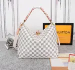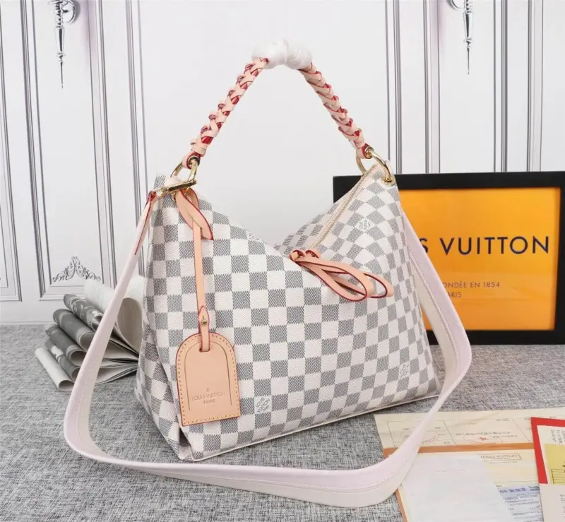 Experience effortless sophistication with this chic hobo shoulder bag. Characterized by its relaxed, slouchy silhouette, this bag is crafted from durable coated canvas featuring a timeless light-hued checkerboard print. The design is beautifully complemented by natural cowhide-leather trim and refined, gold-tone hardware, making it a versatile and stylish accessory for any wardrobe.