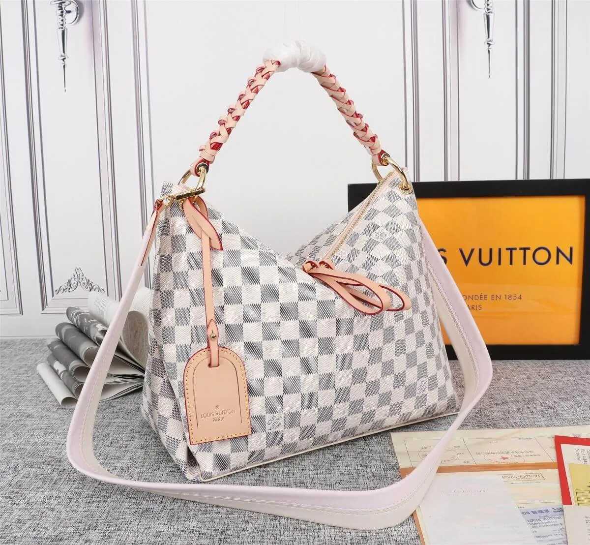 Damier Azur Print Beaubourg Hobo Shoulder Bag MM N40343