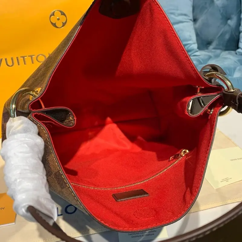 This bag features a celebrated checkerboard print on durable coated canvas, accented with natural cowhide leather trim and gleaming gold-tone hardware for a refined touch. A magnetic tab closure and a zipped internal pocket ensure that all your personal items remain secure yet easily accessible. Its slouchy, classic silhouette makes it a versatile and sophisticated addition to any wardrobe.
